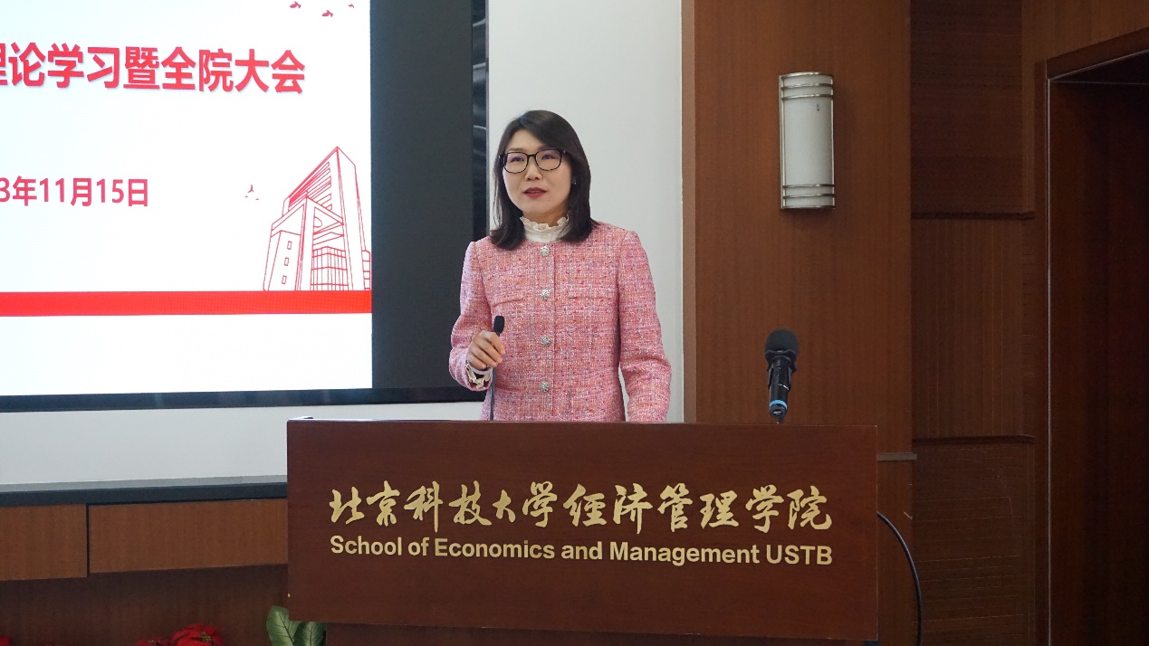 为更有效地提升全院师生理论学习深度和质量,切实推动学习宣传贯彻党的二十大精神和习近平新时代中国特色社会主义思想往深里走、往实里走,取得实实在在的成效,2023年11月15日下午,经济管理学院召开全院教职工理论学习暨全院大会,邀请理论学习导师马克思主义学院魏佳副教授以《从当前社会思潮看意识形态话语权建设》为主题进行主讲。学院全体教职工参加学习,校内第四巡察组副组长王斌列席会议,会议由学院党委书记武森主持。
