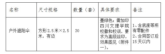 二、项目名称:四川文理学院户外遮阳伞采购