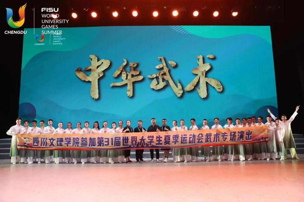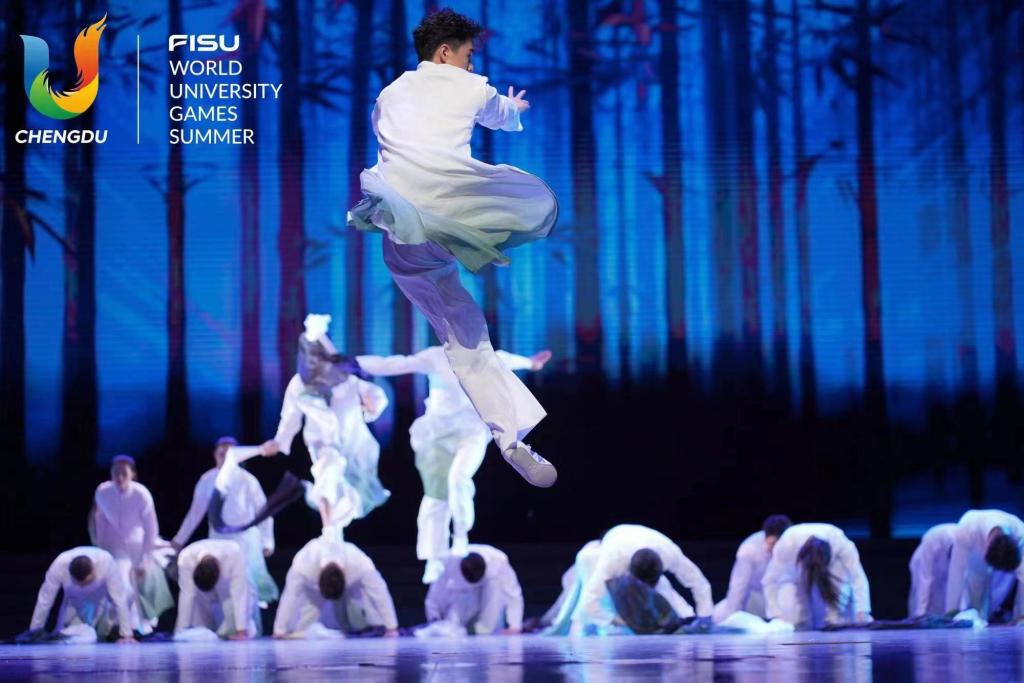 8月6日,第31届世界大学生夏季运动会互动交流武术专场演出活动正式拉开序幕。由四川文理学院创编的“天人合一”太极表演成为一大亮点。舞台上,28名青年大学生身着水墨太极服,衣袂飞扬,潇洒飘逸,徐徐展示着刚柔相济、行云流水的太极武舞,吸引世界各地运动员观看,让中华优秀传统文化再次惊艳世界。