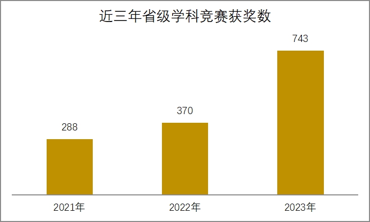 我校历来重视省级学科竞赛,在省级赛项参与上,实现了逐年递增。从个人赛获奖情况看,2023年一等奖比2022年增长了42%,二等奖、三等奖获奖数比2022年翻了一番;优秀指导教师人数更是翻了几番。