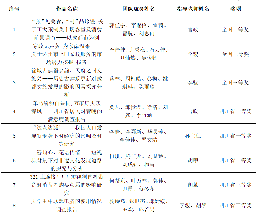 本次大赛分为知识赛网考、团队实践赛和线下答辩赛三个竞赛环节,历时八个月,从全校27支队伍选拔出8支队伍参加国赛。为保证参赛队伍能够提升专业知识,增长见识,提交出优质的论文报告,数学学院为参赛学子举办指导市场调查与分析大赛的赛前培训,专业老师系统讲解相关理论知识。比赛期间,各参赛团队积极备战、奋力拼搏,在指导老师的带领下,就调查选题、问卷设计以及论文的撰写相关事宜进行了多次讨论,不断完善项目的质量,最终从众多高校中脱颖而出,取得优异成绩。