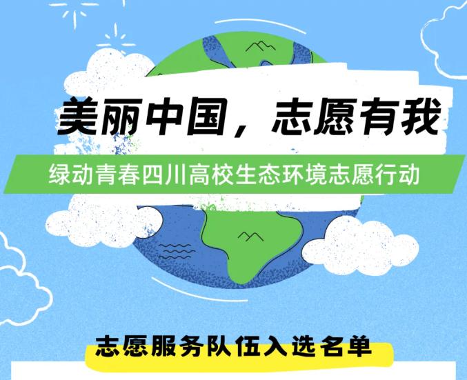 近日,四川省生态环境厅联合共青团四川省委开展了“美丽中国,志愿有我——绿动青春四川高校生态环境志愿行动”。活动得到了各高校志愿服务团队的广泛关注和积极参与,最终经主办方研究确定了44所高校的50支志愿服务队伍,我校大学生环境保护者协会成功入选。