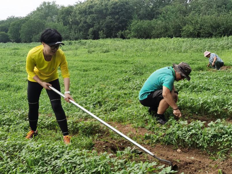 不跑步的同学在农庄除草,用另一种方式陪跑