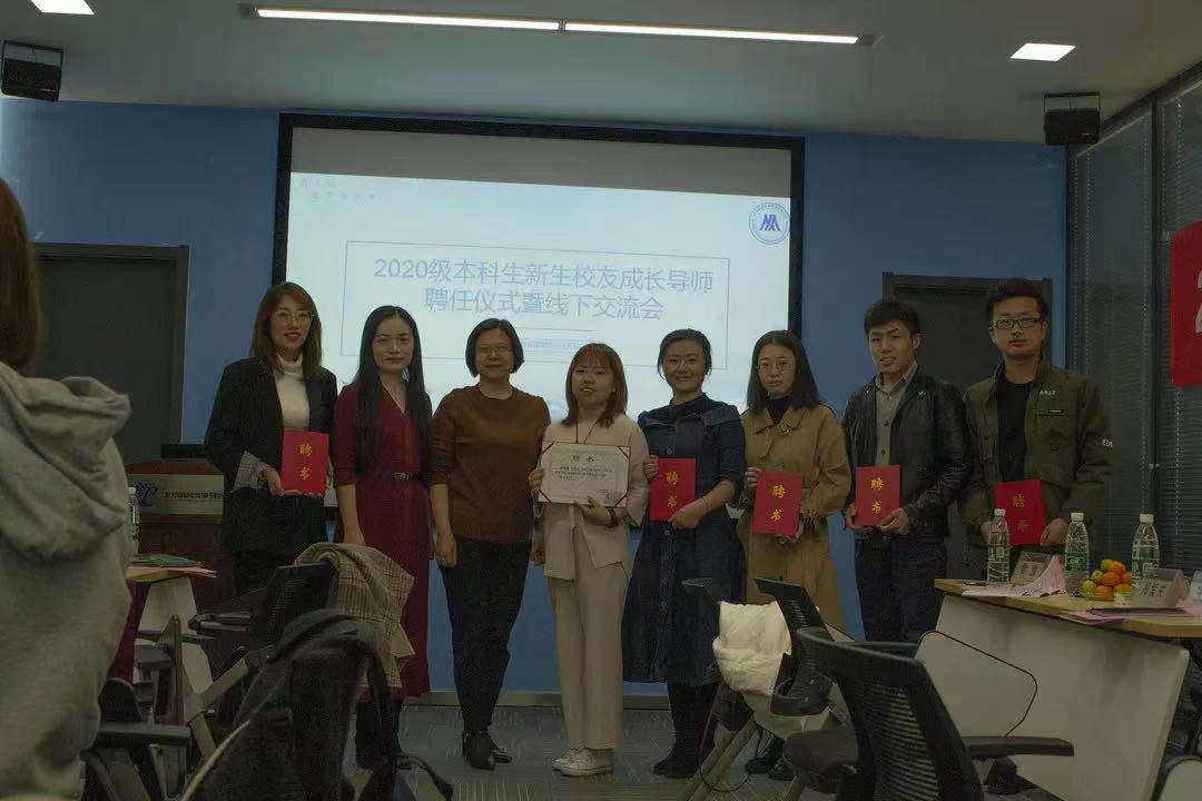 2020级本科生校友“新生成长导师” 聘任仪式暨工作座谈交流会于2020年10月24日上午九点半在北京科技大学贝壳创空间举行。学院党委书记武森,党委副书记倪宇,公共关系办公室主任秦艺芳,2020级新生辅导员邹艺、王琳如,2020级两位新生代表以及9位校友出席了活动。