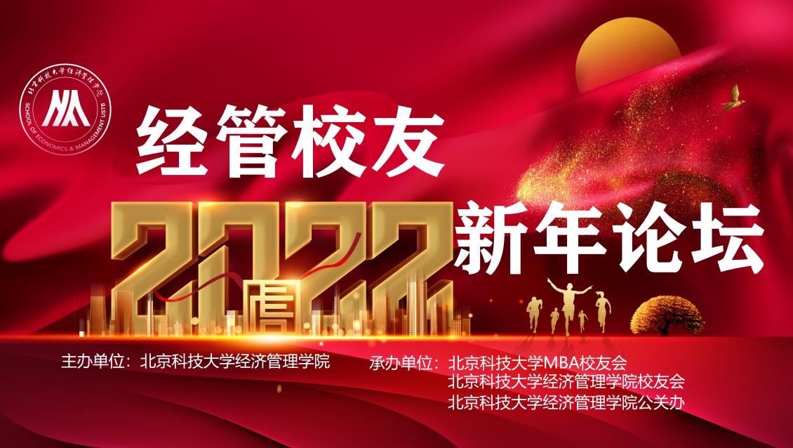 2022年1月23日,北京科技大学“经管校友·2022·新年论坛”以主会场+网络直播的形式在科大天工大厦成功举办。本次主题论坛“数字经济·元宇宙·融合创新”由北京科技大学经济管理学院主办,北京科技大学MBA校友会、北京科技大学经济管理学院校友会和北京科技大学经济管理学院公共关系办公室共同承办。