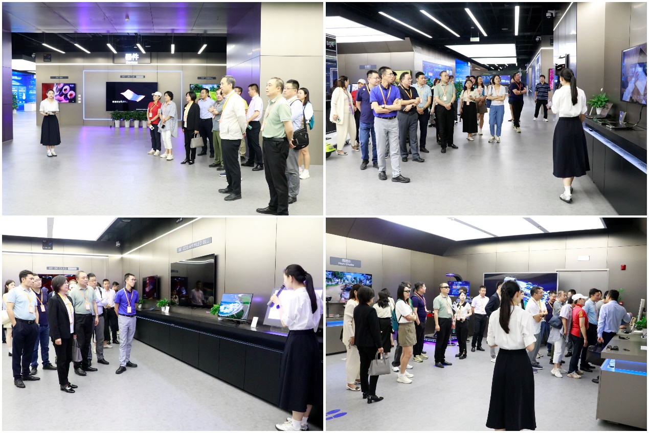在文兴烨校友的陪同下,武森一行首先参观了京东方技术创新中心展厅。该展厅是在公司向物联网转型的背景下打造的,以“核心技术+应用场景”为展示逻辑。大家亲身体验京东方高新技术产品在显示技术、传感器技术、智慧系统、健康服务等多个领域的实际应用,深入了解京东方集团各业务领域的先进技术、产品与解决方案,全面领略公司各业务领域的领先成果。