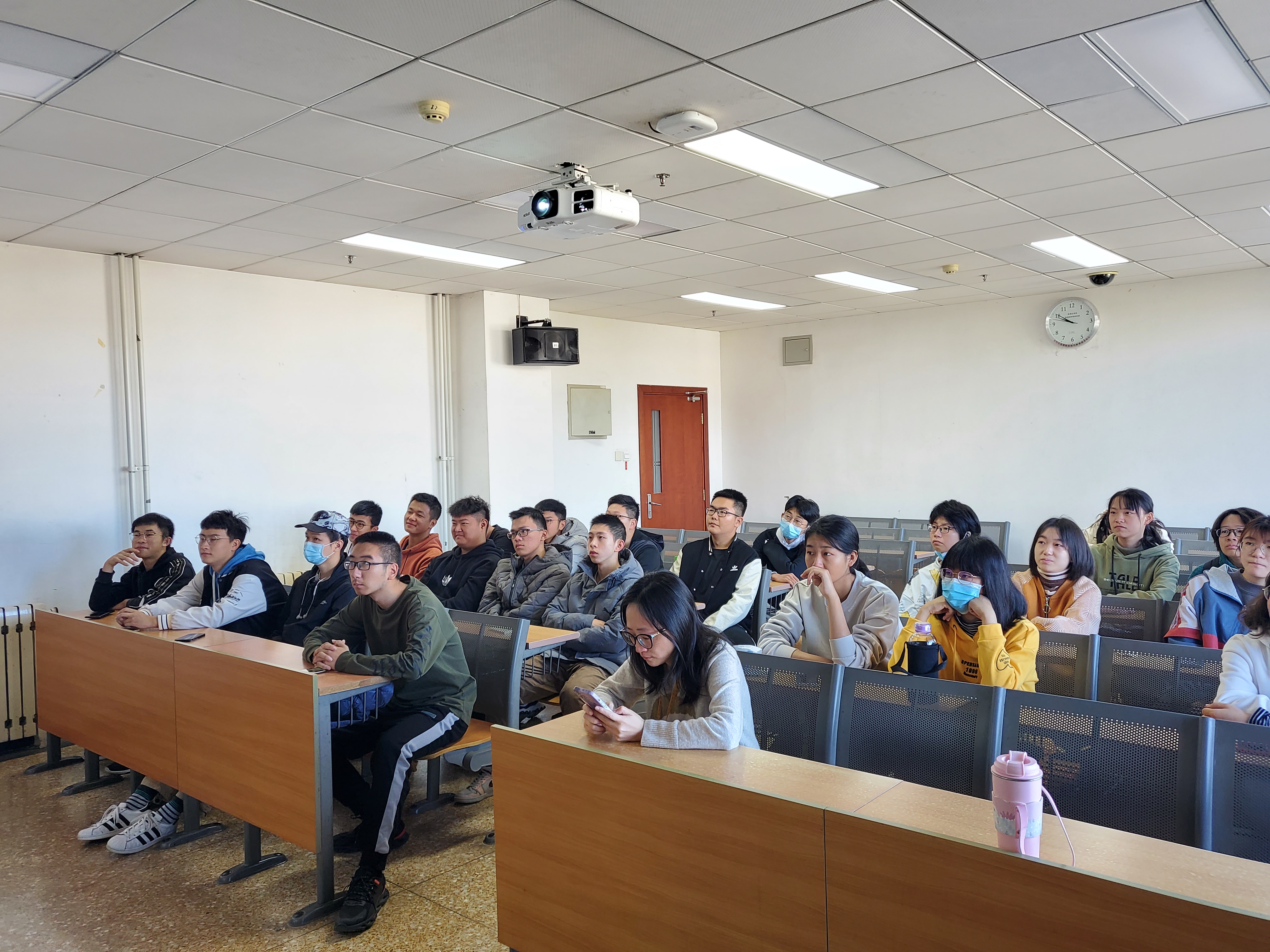 活动第一项,李响老师向大家展示了2021届的学长学姐大学四年学习生活以及大学毕业的视频,视频内容充分展现了北科学子丰富的课余生活,以及他们在大学四年间的变化与成长。随后紧跟视频内容向同学们提出了几个问题,“大学是什么?”、“大学怎么样”。或曰自由,亦有同学认为大学的生活十分的丰富多彩。同学们的看法各不相同,但是李响老师认真的对每一位同学进行了更加深入的询问并对其进行评价,从而使同学们形成更加正确的看待大学生活的观念。
