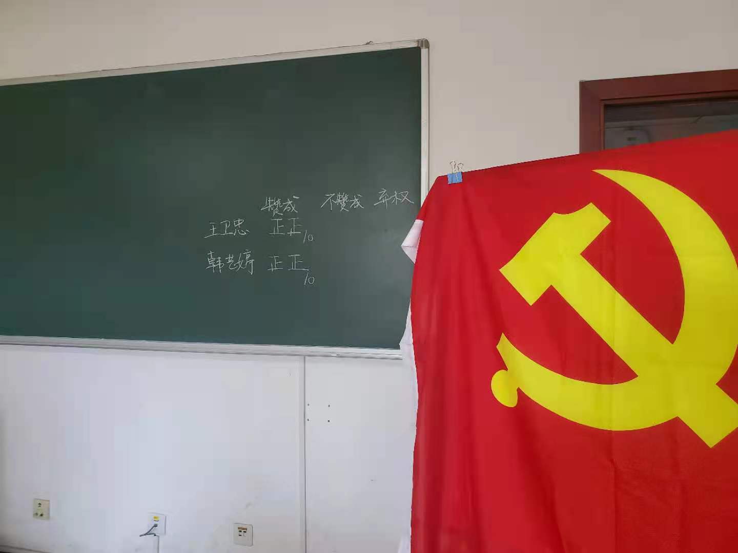 有表决权的全体正式党员进行投票表决,9人全部同意接收王卫忠同志、韩艺婷同志为中共预备党员,未到会党员提交书面意见表示同意接收王卫忠同志及韩艺婷同志为中共预备党员。王卫忠同志表示在预备期以更高标准要求自己,奉献社会,不忘初心,牢记使命。韩艺婷同志表示会继续提升自己的思想水平和学术素养,日后更好地投身到社会主义建设的事业中。