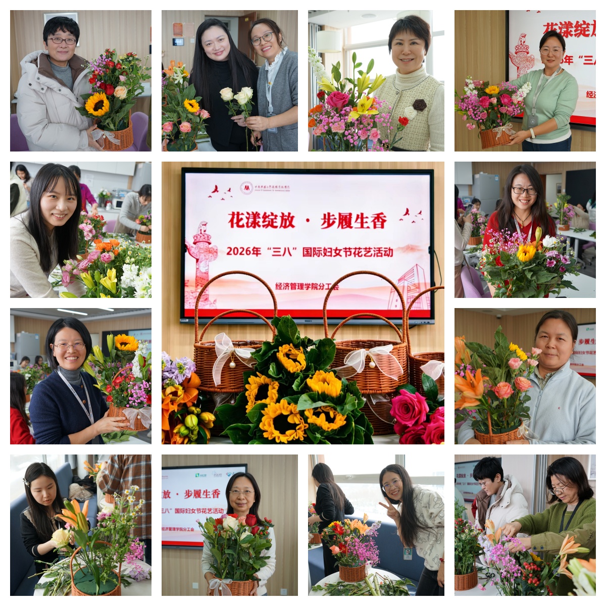 从指尖花艺到足下生风,经管学院以一场"静若处子、动若脱兔"的创意活动,诠释了对女性教职工身心健康的双重关怀。学院未来将持续深化人文关怀,搭建更多展示风采、交流互动的平台,让每一位"女神"都能在奋斗中绽放光彩,在平凡中书写精彩人生。